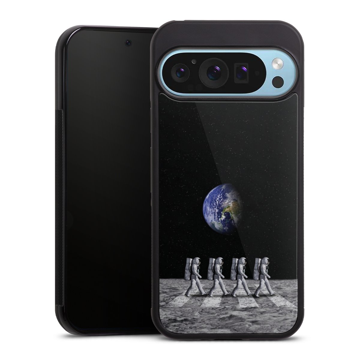 We print your design on the back of the glass inlay and then connect it firmly to the silicone case ,so that nothing sticks out and everything looks like it was cast from one piece. In addition, the sturdy glass element is protected from scratches by an additional coating and ensures a slight reflection on the shiny print image.