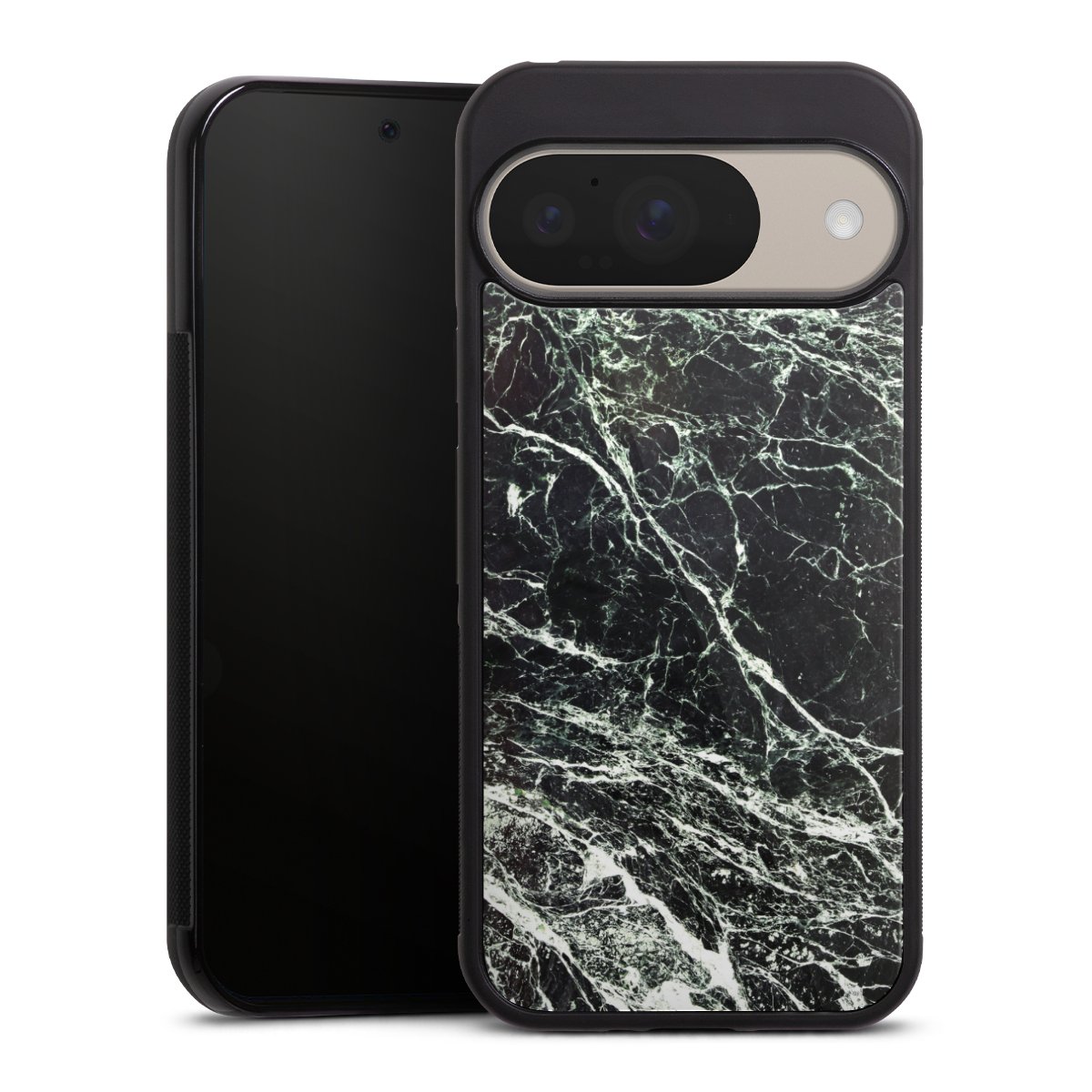 The contrast between the matte black TPU on the sides and the glossy glass surface not only makes the Gallery Case a fest for the eyes, but also a real treat for the hands: The glass gives the phone a pleasantly smooth back and the soft silicone edge provides the necessary grip.