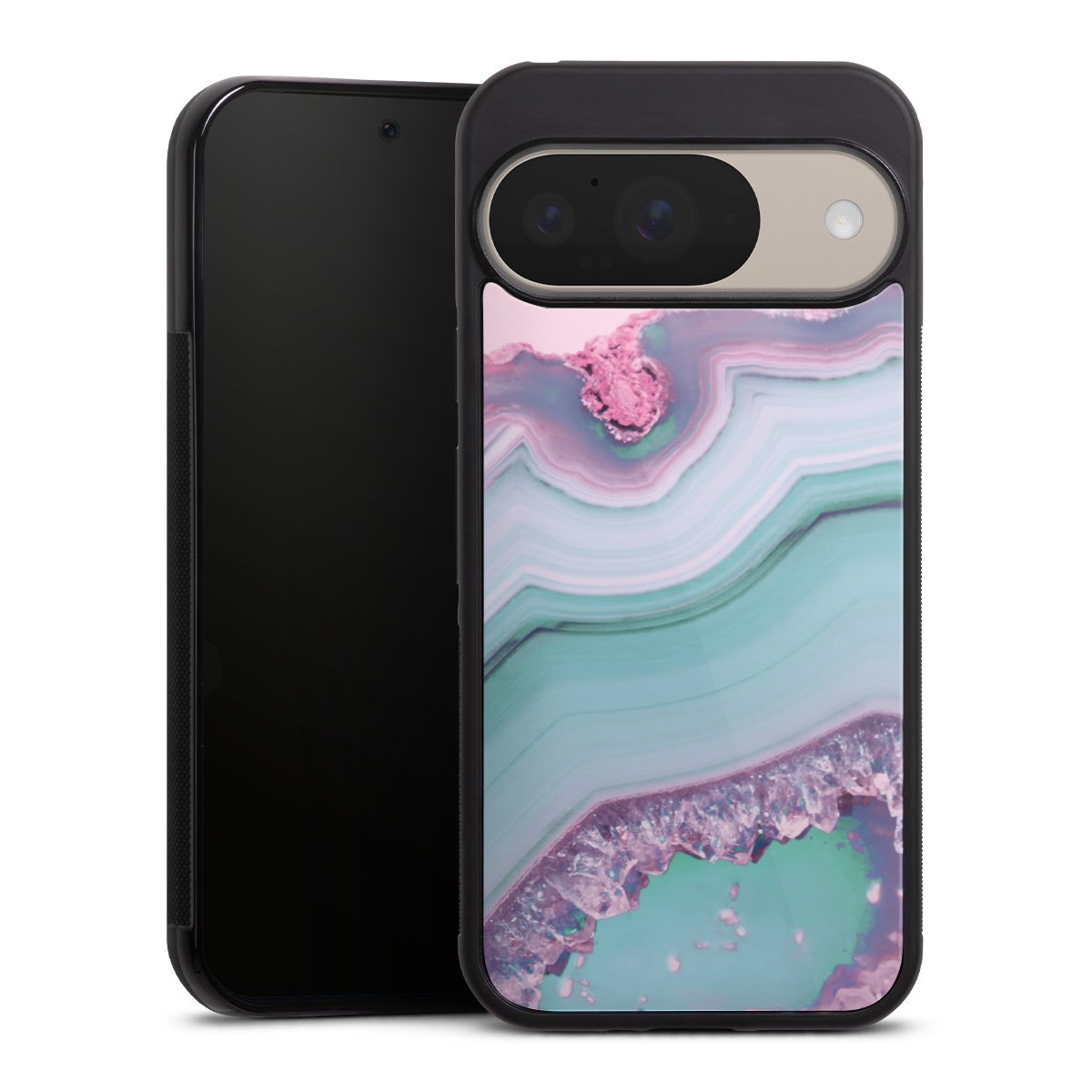 The contrast between the matte black TPU on the sides and the glossy glass surface not only makes the Gallery Case a fest for the eyes, but also a real treat for the hands: The glass gives the phone a pleasantly smooth back and the soft silicone edge provides the necessary grip.
