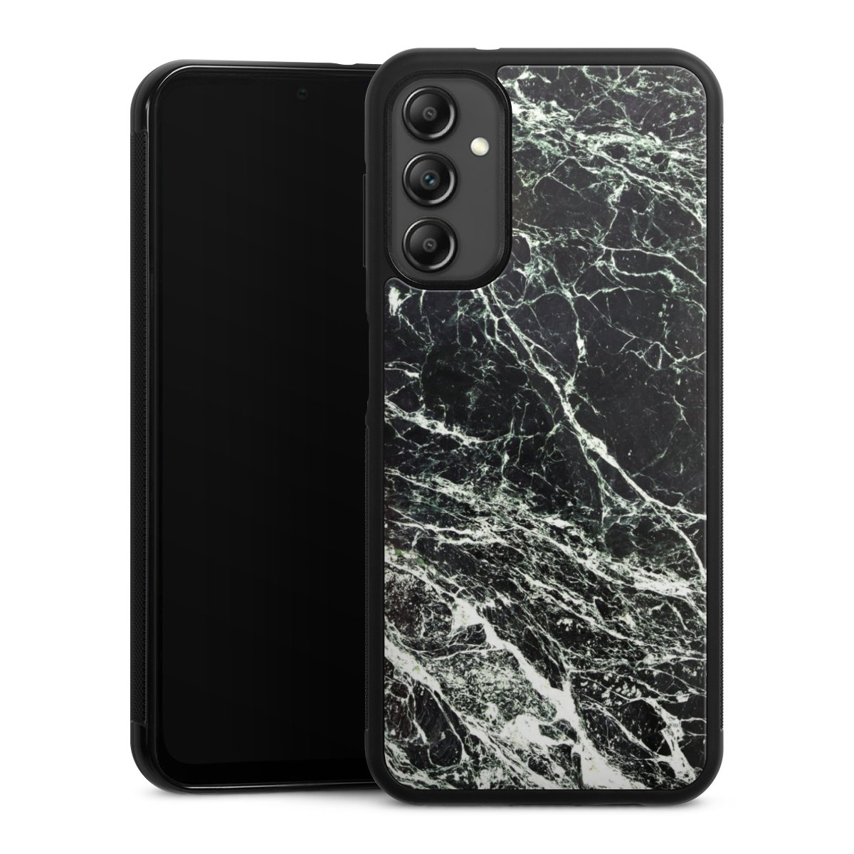 The contrast between the matte black TPU on the sides and the glossy glass surface not only makes the Gallery Case a fest for the eyes, but also a real treat for the hands: The glass gives the phone a pleasantly smooth back and the soft silicone edge provides the necessary grip.