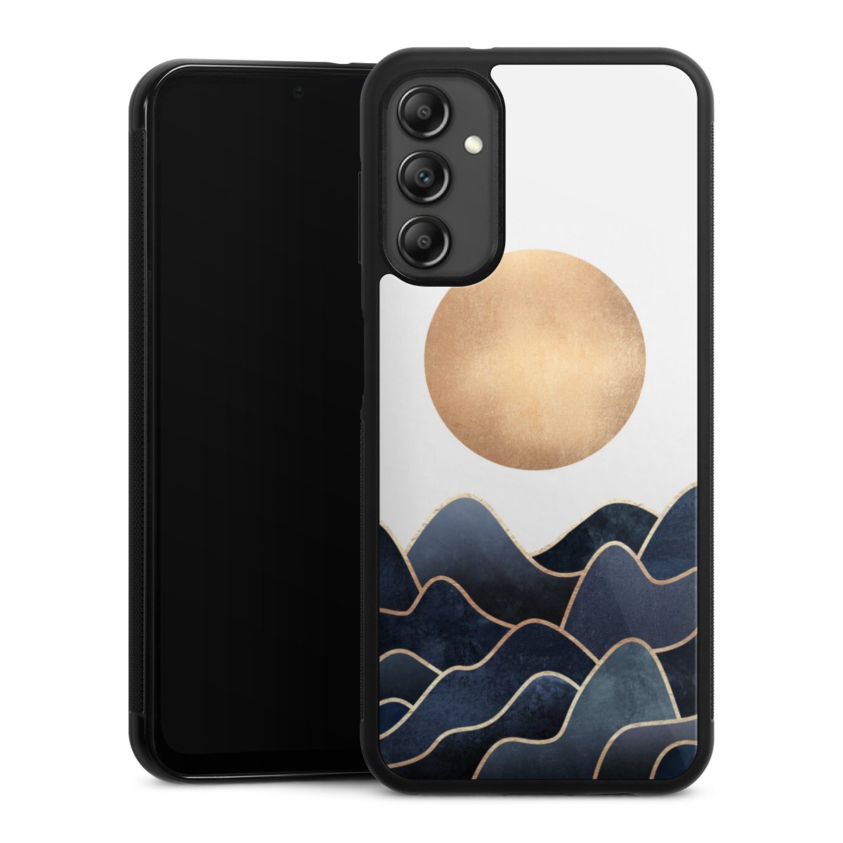 We print your design on the back of the glass inlay and then connect it firmly to the silicone case ,so that nothing sticks out and everything looks like it was cast from one piece. In addition, the sturdy glass element is protected from scratches by an additional coating and ensures a slight reflection on the shiny print image.