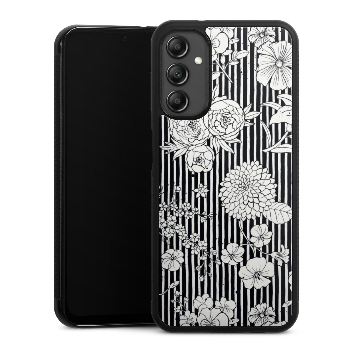 Flowers and Stripes Black and White