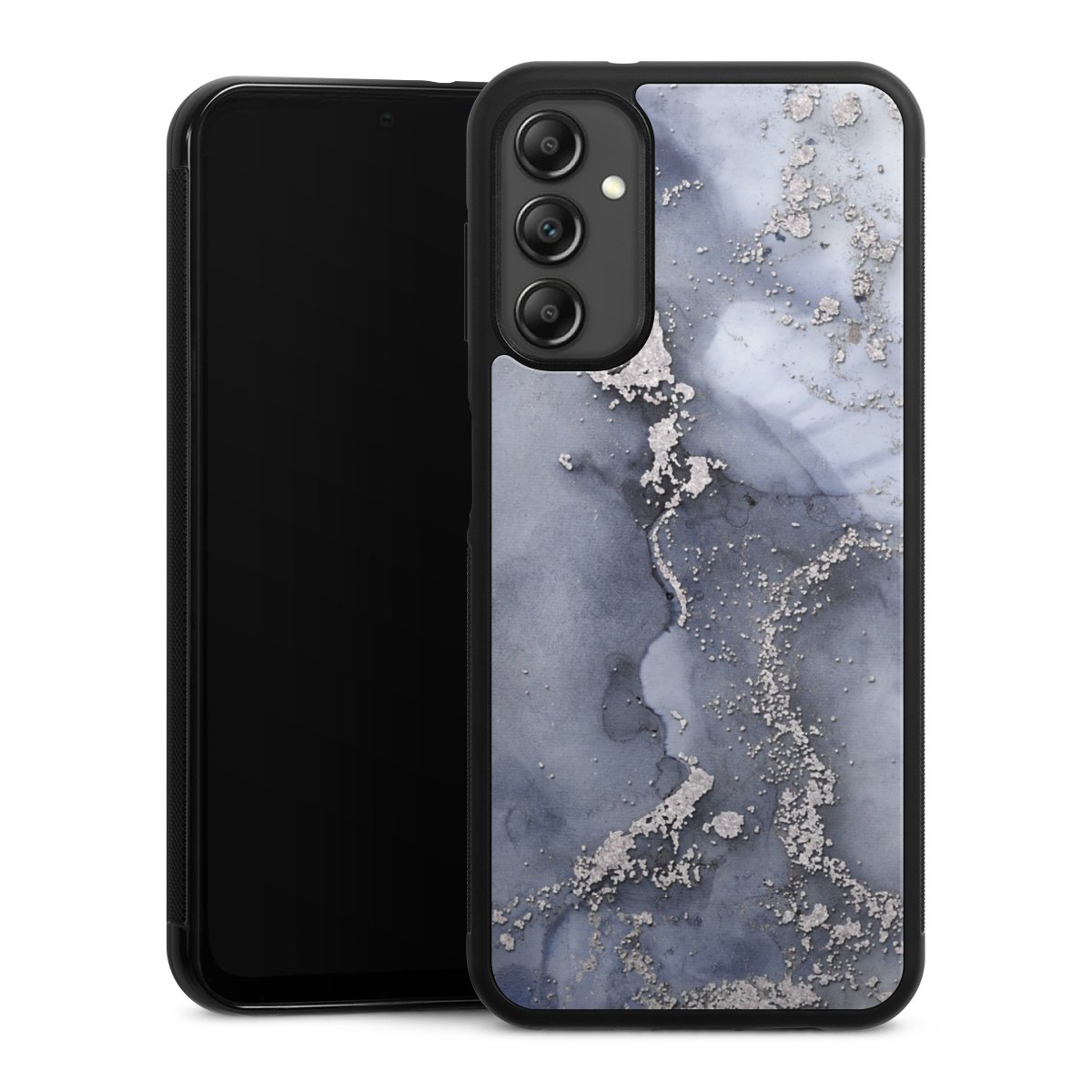 We print your design on the back of the glass inlay and then connect it firmly to the silicone case ,so that nothing sticks out and everything looks like it was cast from one piece. In addition, the sturdy glass element is protected from scratches by an additional coating and ensures a slight reflection on the shiny print image.