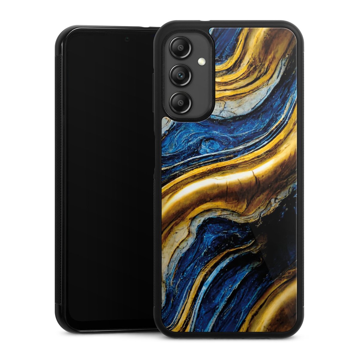 We print your design on the back of the glass inlay and then connect it firmly to the silicone case ,so that nothing sticks out and everything looks like it was cast from one piece. In addition, the sturdy glass element is protected from scratches by an additional coating and ensures a slight reflection on the shiny print image.