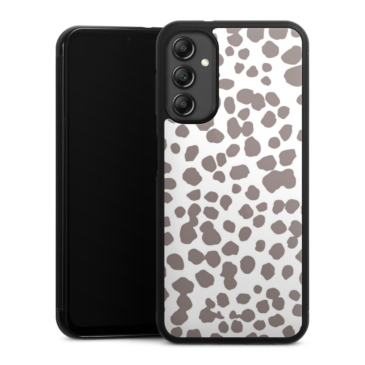 We print your design on the back of the glass inlay and then connect it firmly to the silicone case ,so that nothing sticks out and everything looks like it was cast from one piece. In addition, the sturdy glass element is protected from scratches by an additional coating and ensures a slight reflection on the shiny print image.