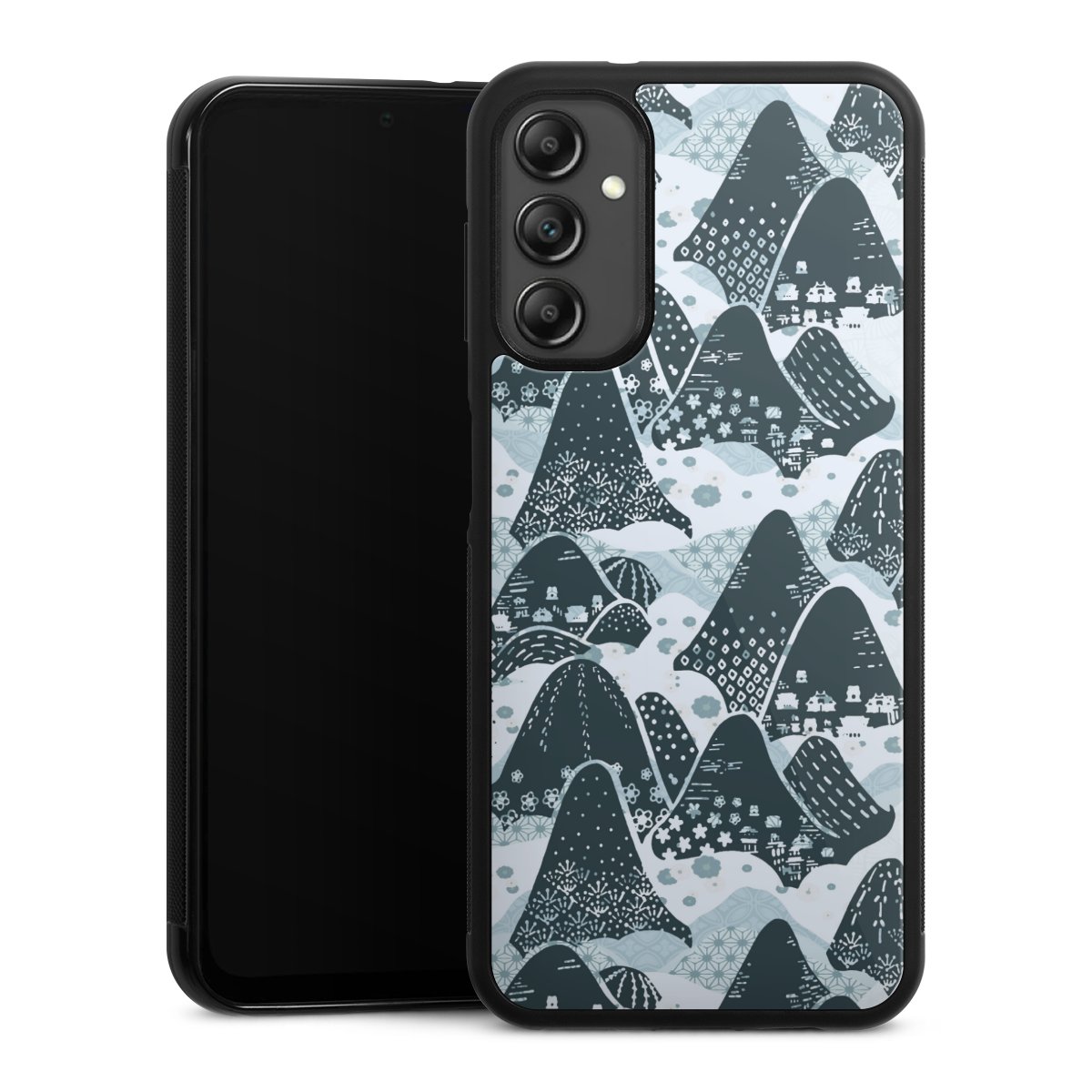 We print your design on the back of the glass inlay and then connect it firmly to the silicone case ,so that nothing sticks out and everything looks like it was cast from one piece. In addition, the sturdy glass element is protected from scratches by an additional coating and ensures a slight reflection on the shiny print image.