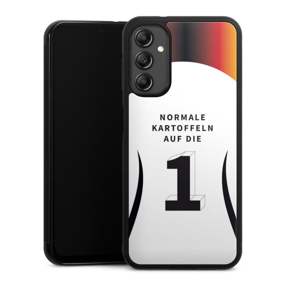 We print your design on the back of the glass inlay and then connect it firmly to the silicone case ,so that nothing sticks out and everything looks like it was cast from one piece. In addition, the sturdy glass element is protected from scratches by an additional coating and ensures a slight reflection on the shiny print image.
