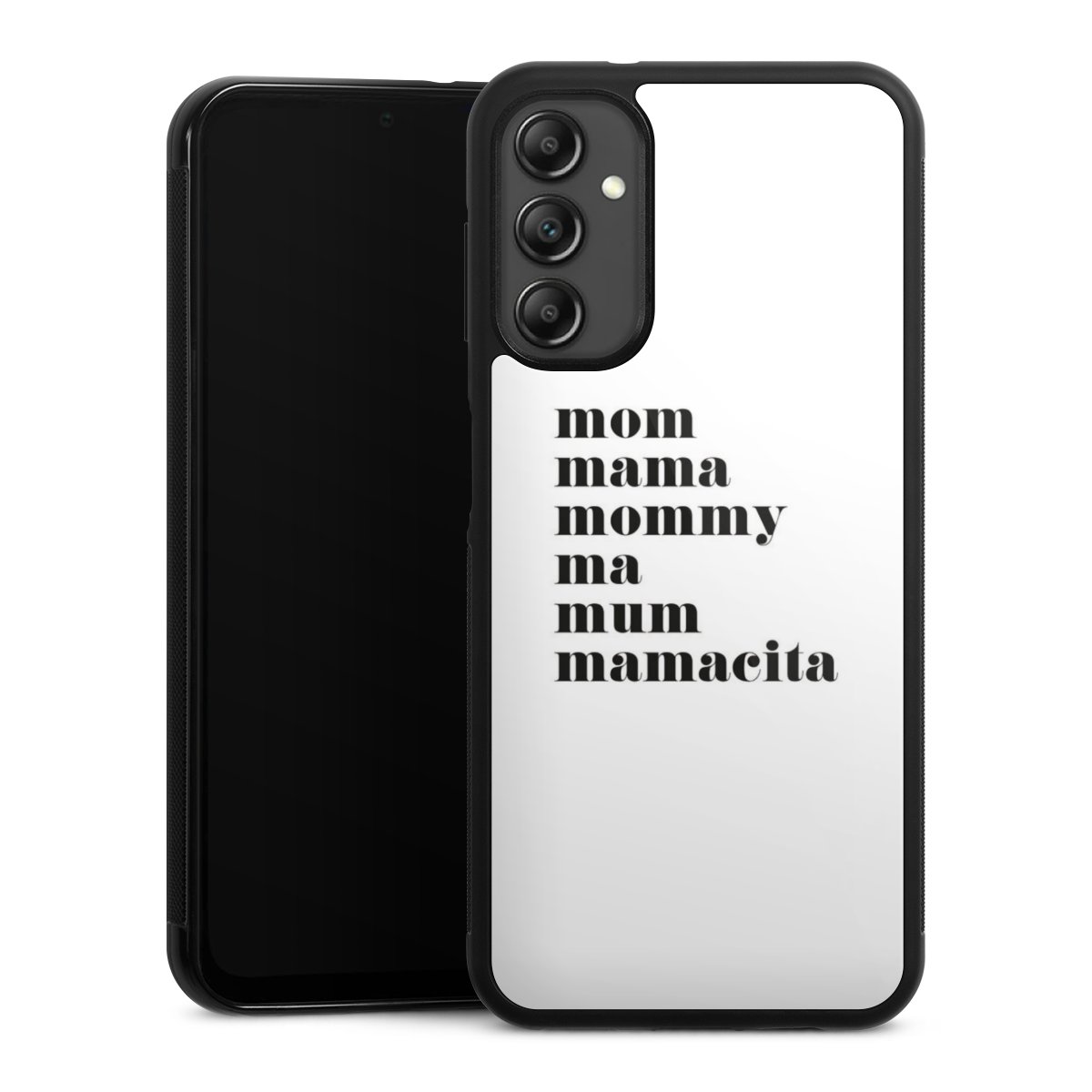 We print your design on the back of the glass inlay and then connect it firmly to the silicone case ,so that nothing sticks out and everything looks like it was cast from one piece. In addition, the sturdy glass element is protected from scratches by an additional coating and ensures a slight reflection on the shiny print image.