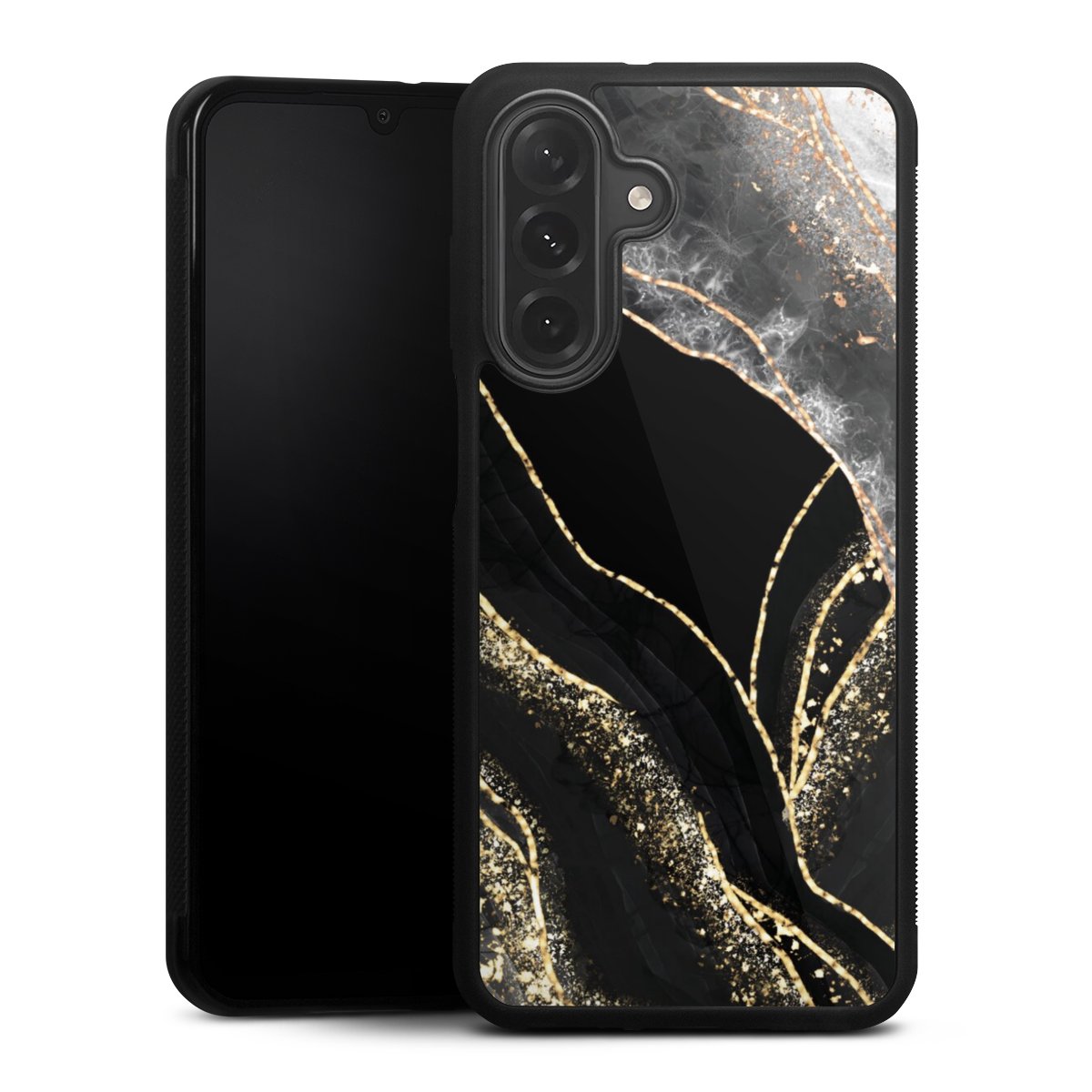 The contrast between the matte black TPU on the sides and the glossy glass surface not only makes the Gallery Case a fest for the eyes, but also a real treat for the hands: The glass gives the phone a pleasantly smooth back and the soft silicone edge provides the necessary grip.