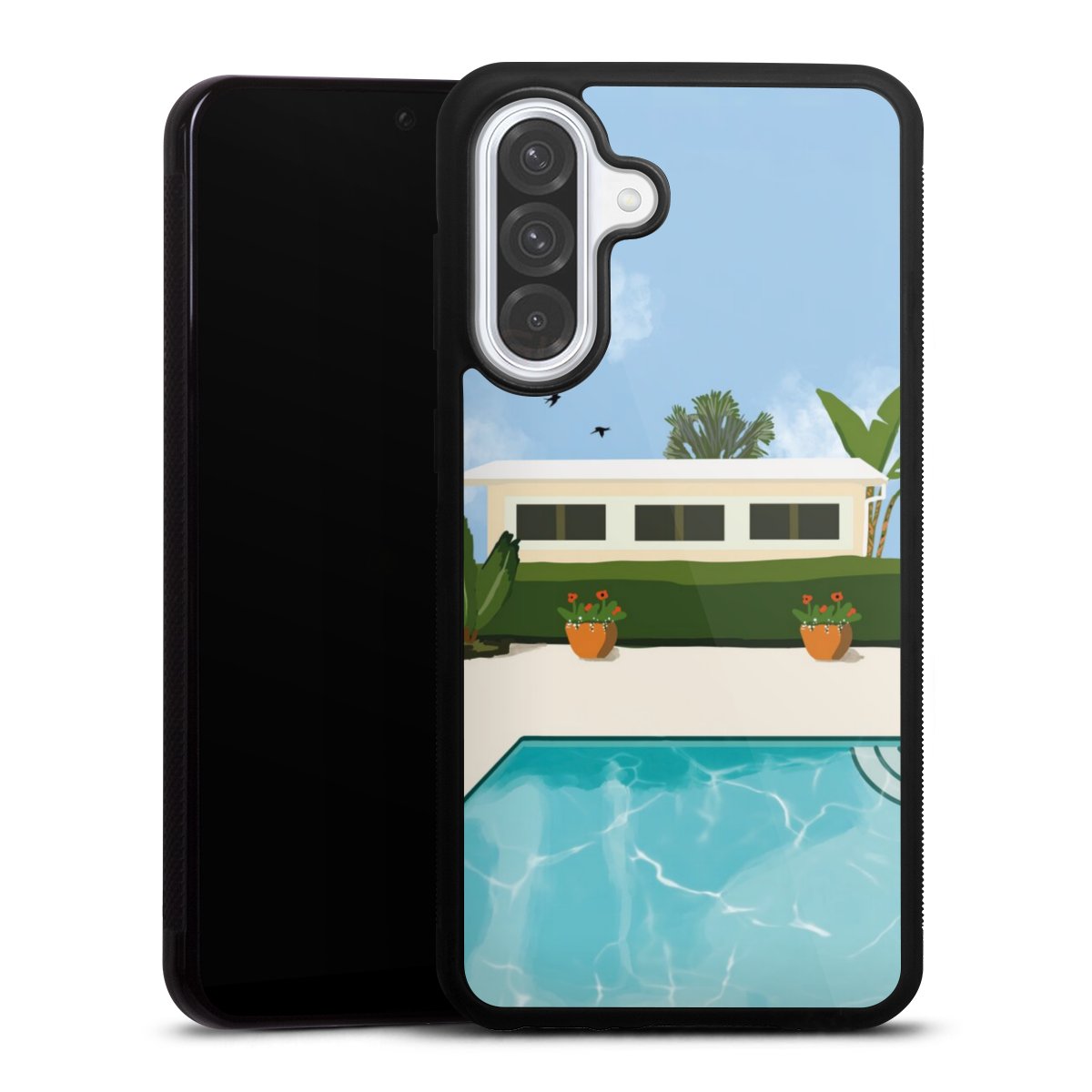 For this phone case, we use the solid direct printing process. The printing area covers the back of the glass plate, the edge of the case remains unprinted. The phone case can only be ordered fully printed. Choose for your design one of our exclusive designs or get creative and create your own design, for example with pictures and overlays. The choice is yours!
