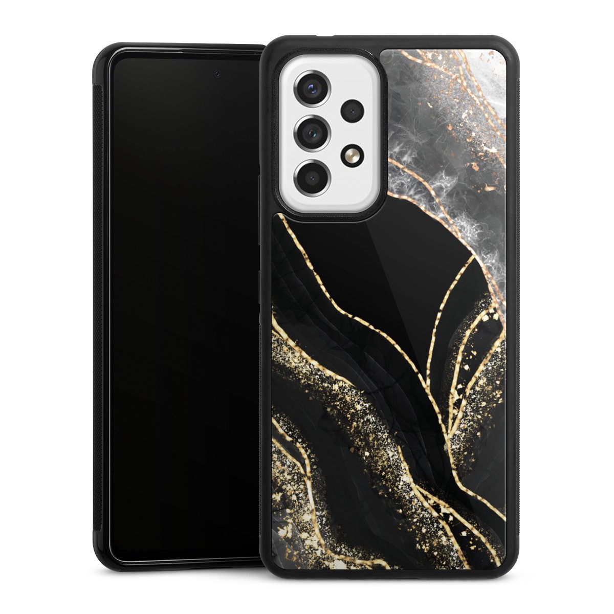 The contrast between the matte black TPU on the sides and the glossy glass surface not only makes the Gallery Case a fest for the eyes, but also a real treat for the hands: The glass gives the phone a pleasantly smooth back and the soft silicone edge provides the necessary grip.