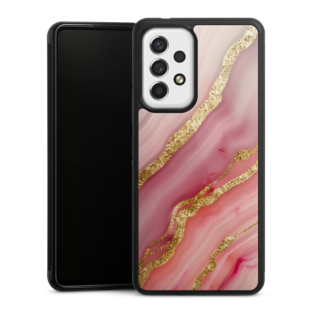 The contrast between the matte black TPU on the sides and the glossy glass surface not only makes the Gallery Case a fest for the eyes, but also a real treat for the hands: The glass gives the phone a pleasantly smooth back and the soft silicone edge provides the necessary grip.