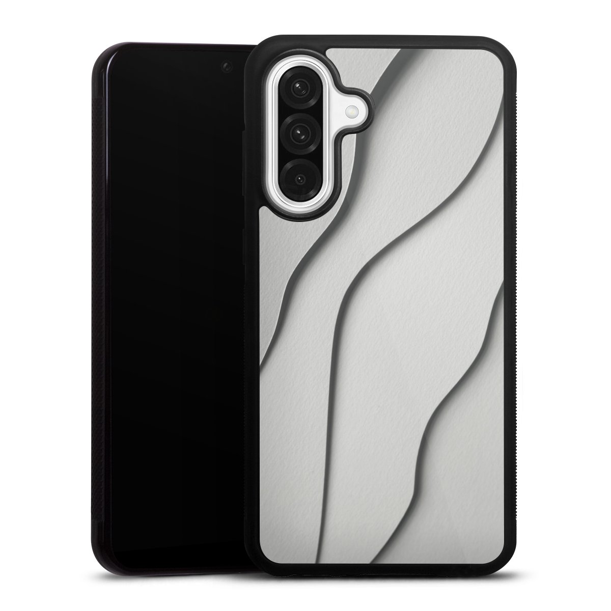 The contrast between the matte black TPU on the sides and the glossy glass surface not only makes the Gallery Case a fest for the eyes, but also a real treat for the hands: The glass gives the phone a pleasantly smooth back and the soft silicone edge provides the necessary grip.