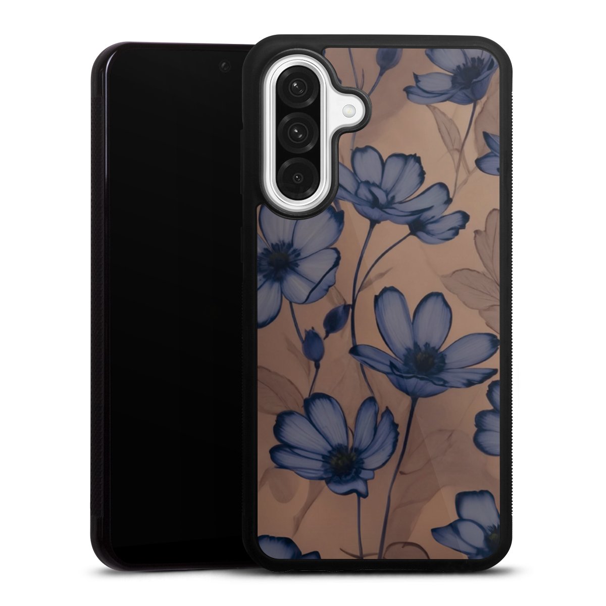 We print your design on the back of the glass inlay and then connect it firmly to the silicone case ,so that nothing sticks out and everything looks like it was cast from one piece. In addition, the sturdy glass element is protected from scratches by an additional coating and ensures a slight reflection on the shiny print image.