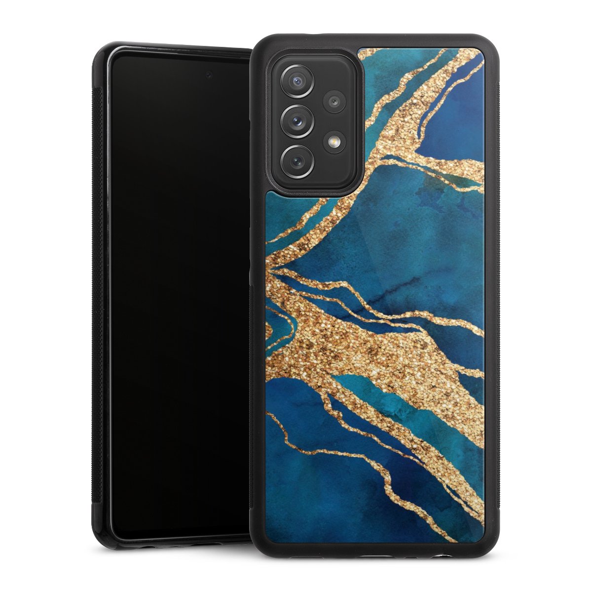 We print your design on the back of the glass inlay and then connect it firmly to the silicone case ,so that nothing sticks out and everything looks like it was cast from one piece. In addition, the sturdy glass element is protected from scratches by an additional coating and ensures a slight reflection on the shiny print image.