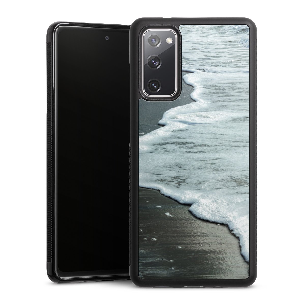 We print your design on the back of the glass inlay and then connect it firmly to the silicone case ,so that nothing sticks out and everything looks like it was cast from one piece. In addition, the sturdy glass element is protected from scratches by an additional coating and ensures a slight reflection on the shiny print image.