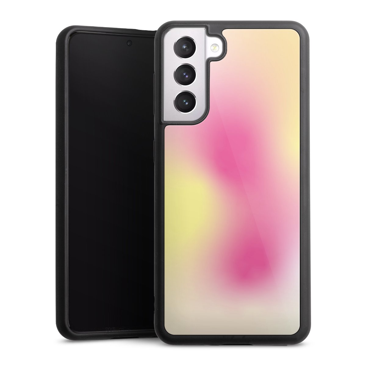 We print your design on the back of the glass inlay and then connect it firmly to the silicone case ,so that nothing sticks out and everything looks like it was cast from one piece. In addition, the sturdy glass element is protected from scratches by an additional coating and ensures a slight reflection on the shiny print image.