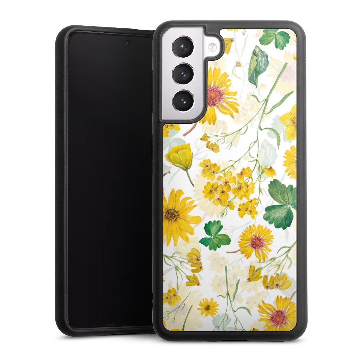 We print your design on the back of the glass inlay and then connect it firmly to the silicone case ,so that nothing sticks out and everything looks like it was cast from one piece. In addition, the sturdy glass element is protected from scratches by an additional coating and ensures a slight reflection on the shiny print image.