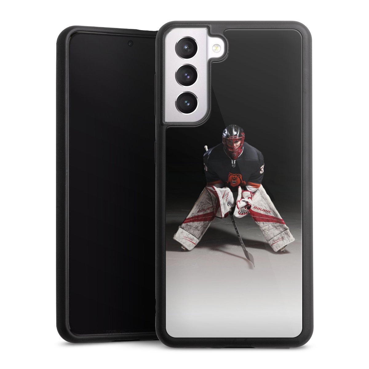 We print your design on the back of the glass inlay and then connect it firmly to the silicone case ,so that nothing sticks out and everything looks like it was cast from one piece. In addition, the sturdy glass element is protected from scratches by an additional coating and ensures a slight reflection on the shiny print image.