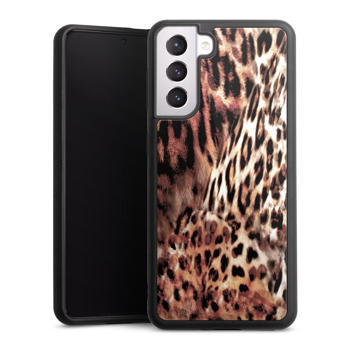 We print your design on the back of the glass inlay and then connect it firmly to the silicone case ,so that nothing sticks out and everything looks like it was cast from one piece. In addition, the sturdy glass element is protected from scratches by an additional coating and ensures a slight reflection on the shiny print image.