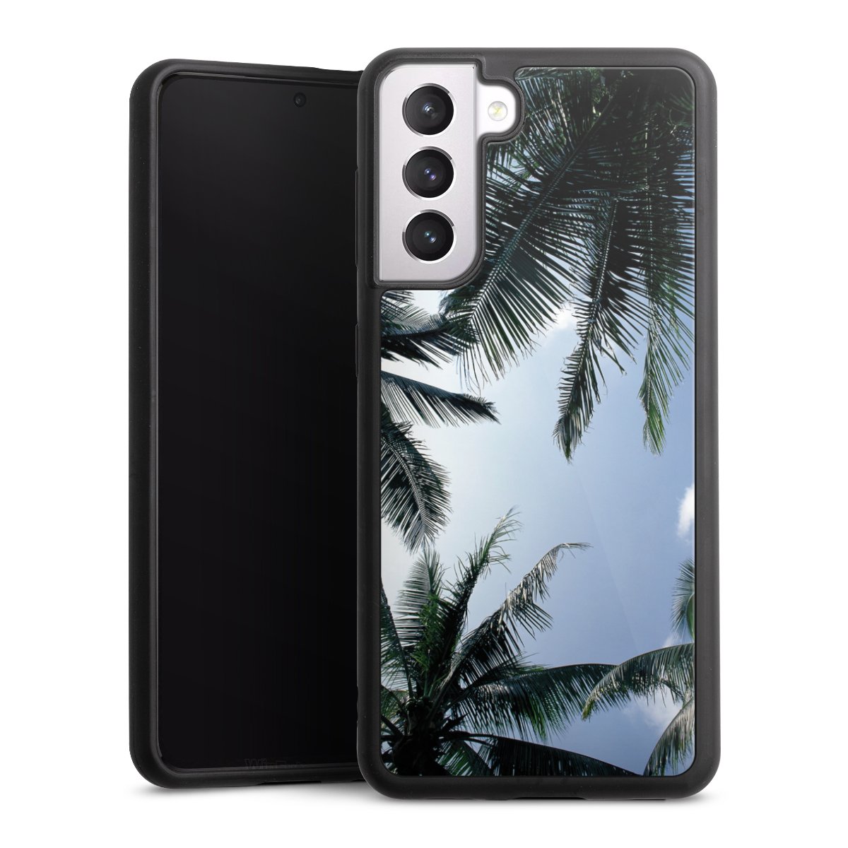 We print your design on the back of the glass inlay and then connect it firmly to the silicone case ,so that nothing sticks out and everything looks like it was cast from one piece. In addition, the sturdy glass element is protected from scratches by an additional coating and ensures a slight reflection on the shiny print image.