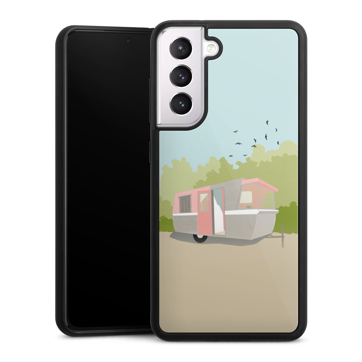 For this phone case, we use the solid direct printing process. The printing area covers the back of the glass plate, the edge of the case remains unprinted. The phone case can only be ordered fully printed. Choose for your design one of our exclusive designs or get creative and create your own design, for example with pictures and overlays. The choice is yours!