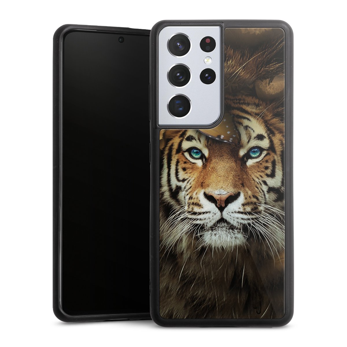 We print your design on the back of the glass inlay and then connect it firmly to the silicone case ,so that nothing sticks out and everything looks like it was cast from one piece. In addition, the sturdy glass element is protected from scratches by an additional coating and ensures a slight reflection on the shiny print image.