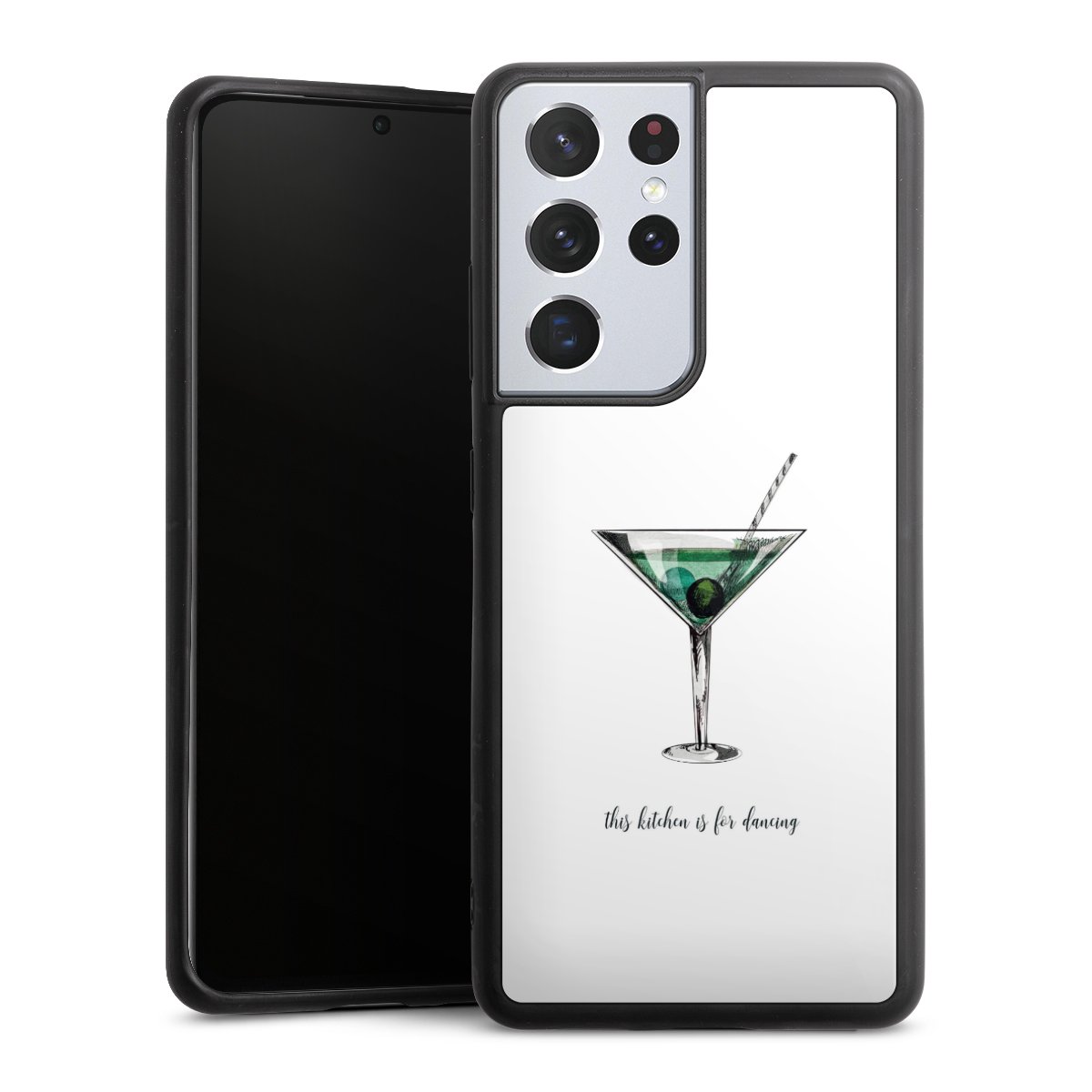 We print your design on the back of the glass inlay and then connect it firmly to the silicone case ,so that nothing sticks out and everything looks like it was cast from one piece. In addition, the sturdy glass element is protected from scratches by an additional coating and ensures a slight reflection on the shiny print image.