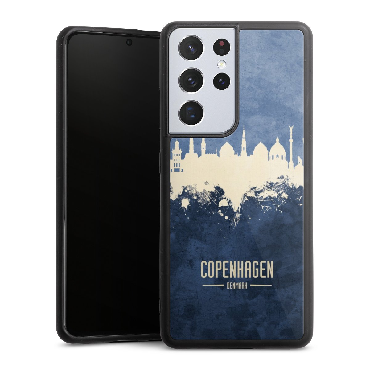 We print your design on the back of the glass inlay and then connect it firmly to the silicone case ,so that nothing sticks out and everything looks like it was cast from one piece. In addition, the sturdy glass element is protected from scratches by an additional coating and ensures a slight reflection on the shiny print image.