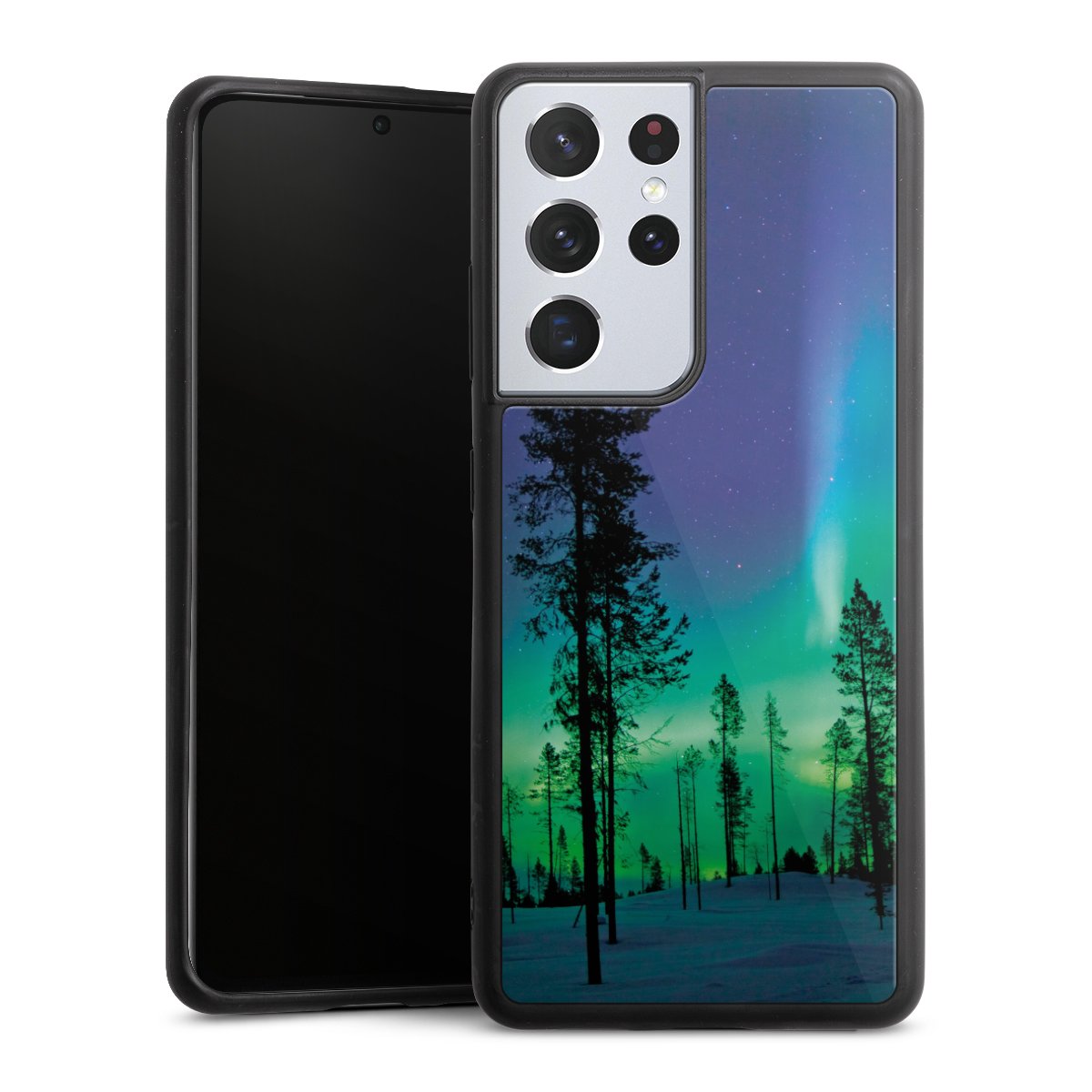 We print your design on the back of the glass inlay and then connect it firmly to the silicone case ,so that nothing sticks out and everything looks like it was cast from one piece. In addition, the sturdy glass element is protected from scratches by an additional coating and ensures a slight reflection on the shiny print image.