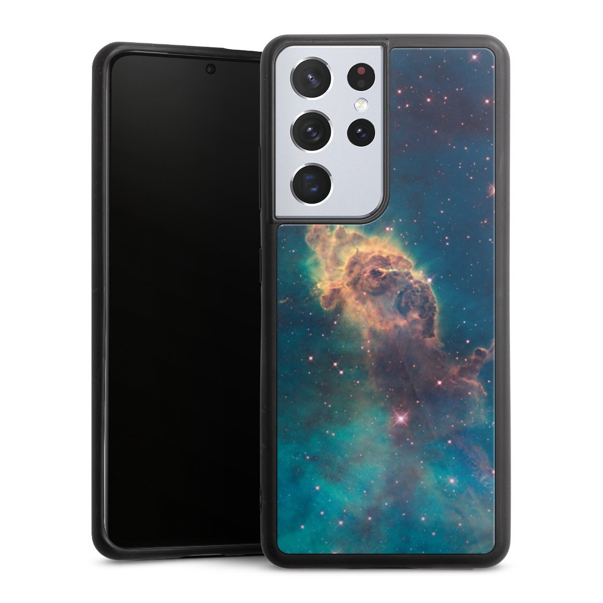 We print your design on the back of the glass inlay and then connect it firmly to the silicone case ,so that nothing sticks out and everything looks like it was cast from one piece. In addition, the sturdy glass element is protected from scratches by an additional coating and ensures a slight reflection on the shiny print image.