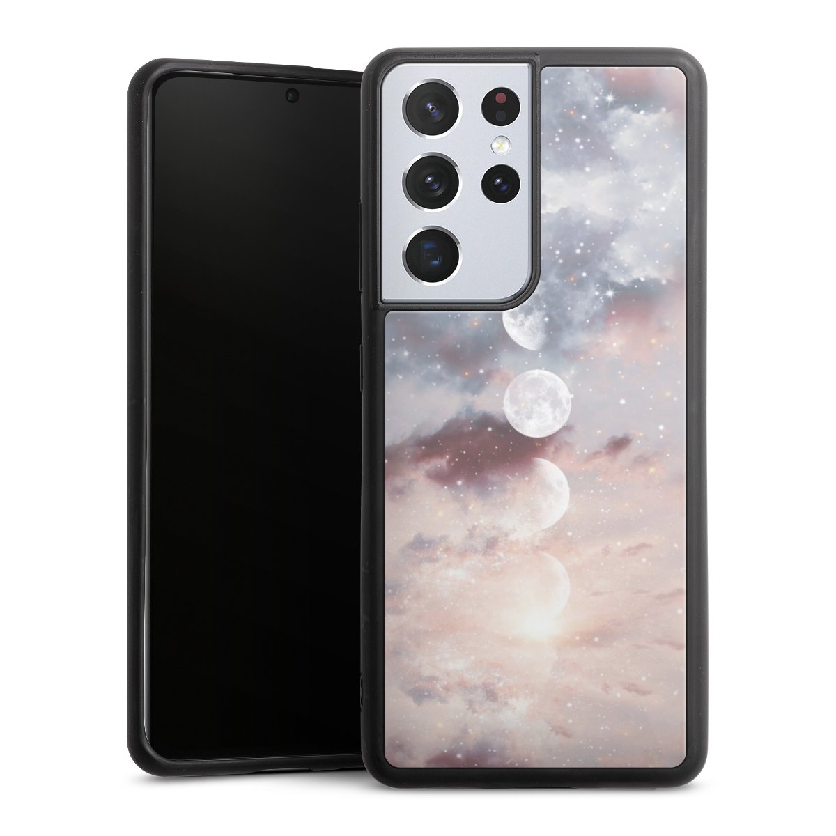 We print your design on the back of the glass inlay and then connect it firmly to the silicone case ,so that nothing sticks out and everything looks like it was cast from one piece. In addition, the sturdy glass element is protected from scratches by an additional coating and ensures a slight reflection on the shiny print image.