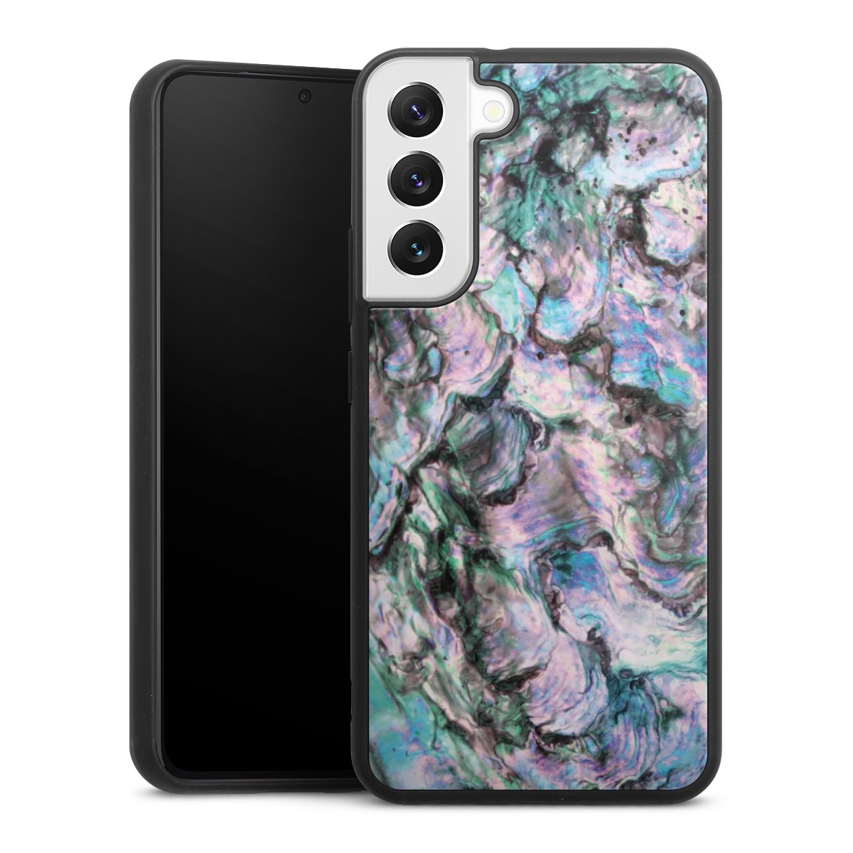 We print your design on the back of the glass inlay and then connect it firmly to the silicone case ,so that nothing sticks out and everything looks like it was cast from one piece. In addition, the sturdy glass element is protected from scratches by an additional coating and ensures a slight reflection on the shiny print image.
