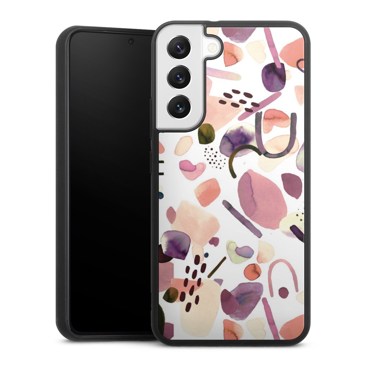 We print your design on the back of the glass inlay and then connect it firmly to the silicone case ,so that nothing sticks out and everything looks like it was cast from one piece. In addition, the sturdy glass element is protected from scratches by an additional coating and ensures a slight reflection on the shiny print image.