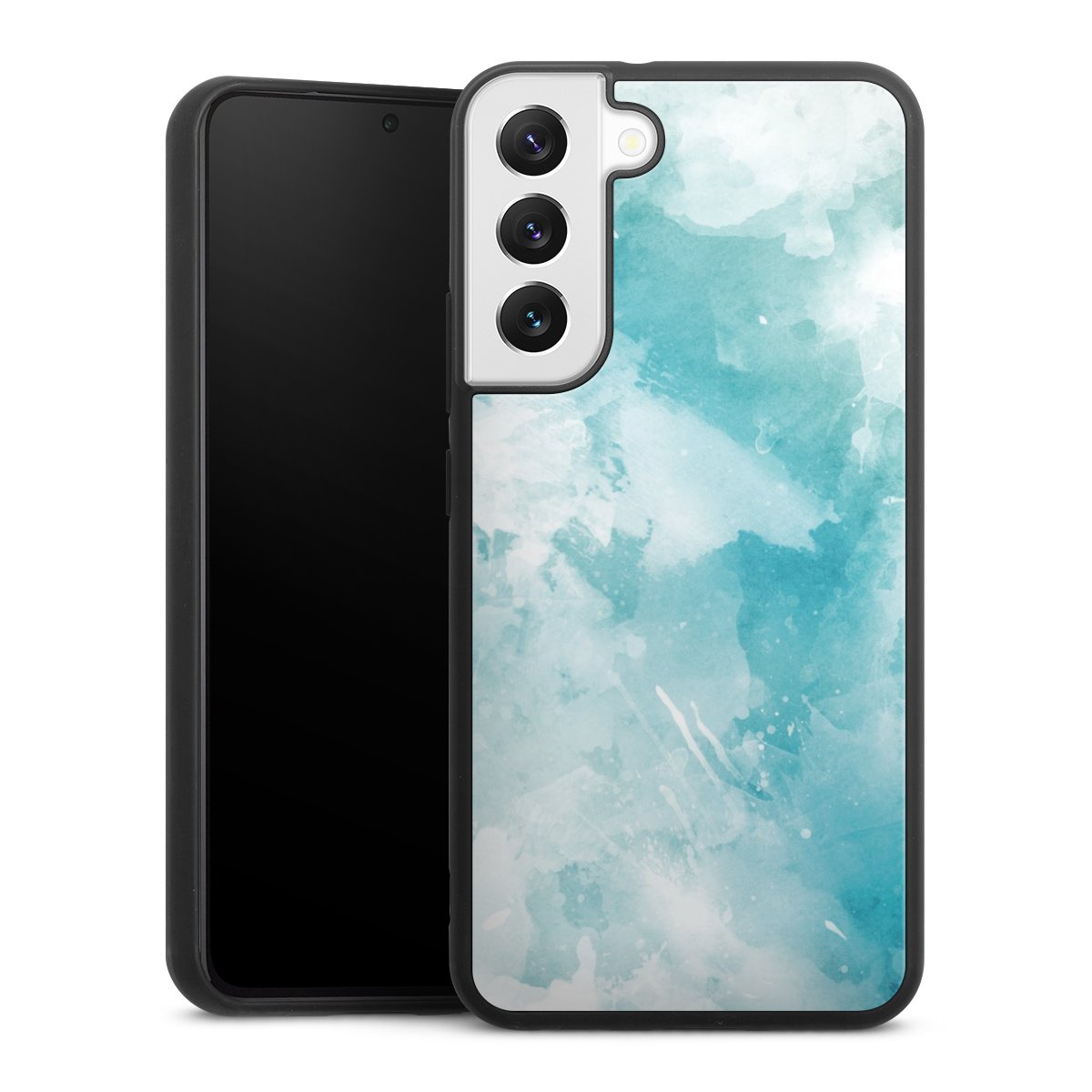 We print your design on the back of the glass inlay and then connect it firmly to the silicone case ,so that nothing sticks out and everything looks like it was cast from one piece. In addition, the sturdy glass element is protected from scratches by an additional coating and ensures a slight reflection on the shiny print image.