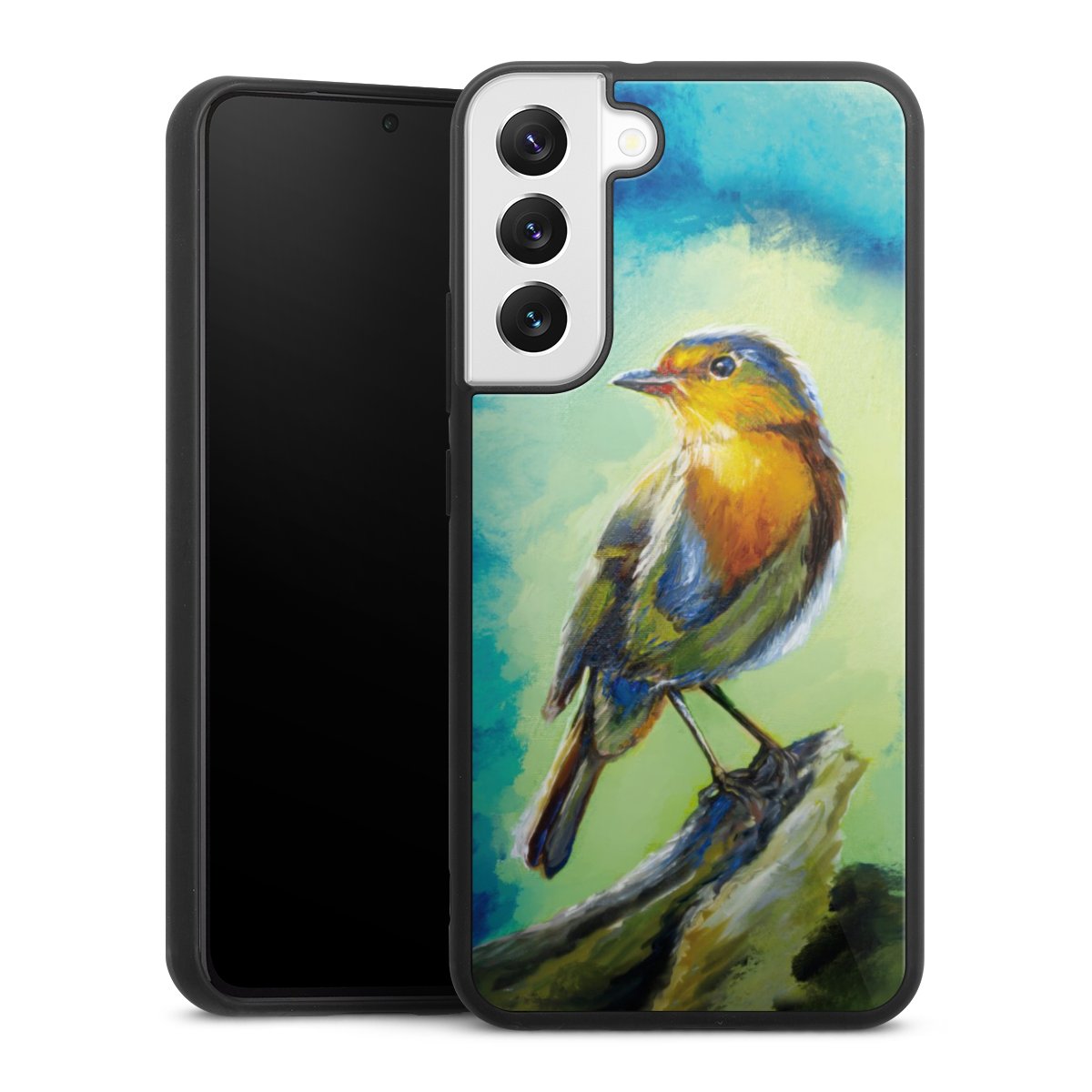 We print your design on the back of the glass inlay and then connect it firmly to the silicone case ,so that nothing sticks out and everything looks like it was cast from one piece. In addition, the sturdy glass element is protected from scratches by an additional coating and ensures a slight reflection on the shiny print image.