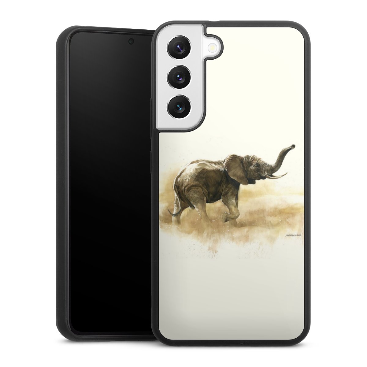 We print your design on the back of the glass inlay and then connect it firmly to the silicone case ,so that nothing sticks out and everything looks like it was cast from one piece. In addition, the sturdy glass element is protected from scratches by an additional coating and ensures a slight reflection on the shiny print image.