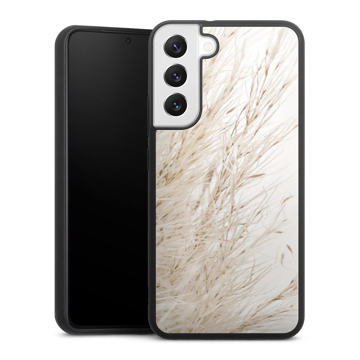 We print your design on the back of the glass inlay and then connect it firmly to the silicone case ,so that nothing sticks out and everything looks like it was cast from one piece. In addition, the sturdy glass element is protected from scratches by an additional coating and ensures a slight reflection on the shiny print image.