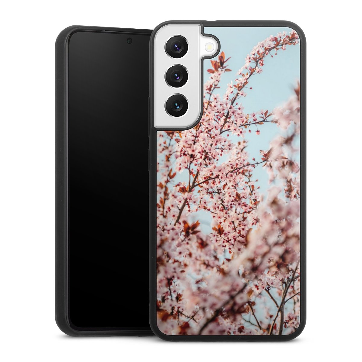 We print your design on the back of the glass inlay and then connect it firmly to the silicone case ,so that nothing sticks out and everything looks like it was cast from one piece. In addition, the sturdy glass element is protected from scratches by an additional coating and ensures a slight reflection on the shiny print image.