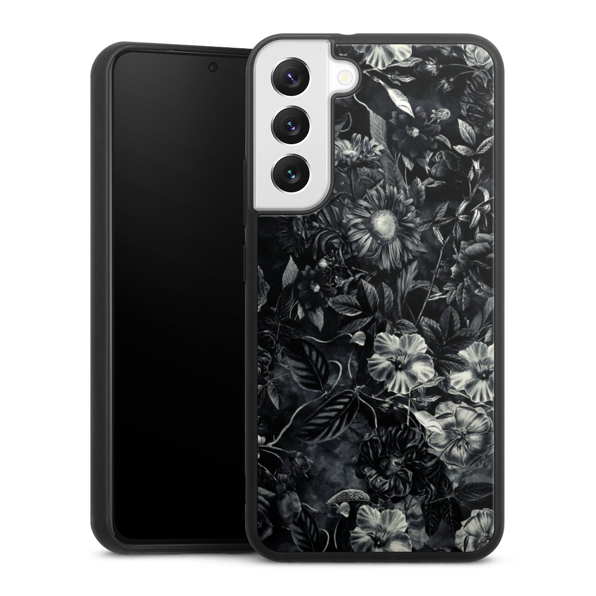 We print your design on the back of the glass inlay and then connect it firmly to the silicone case ,so that nothing sticks out and everything looks like it was cast from one piece. In addition, the sturdy glass element is protected from scratches by an additional coating and ensures a slight reflection on the shiny print image.