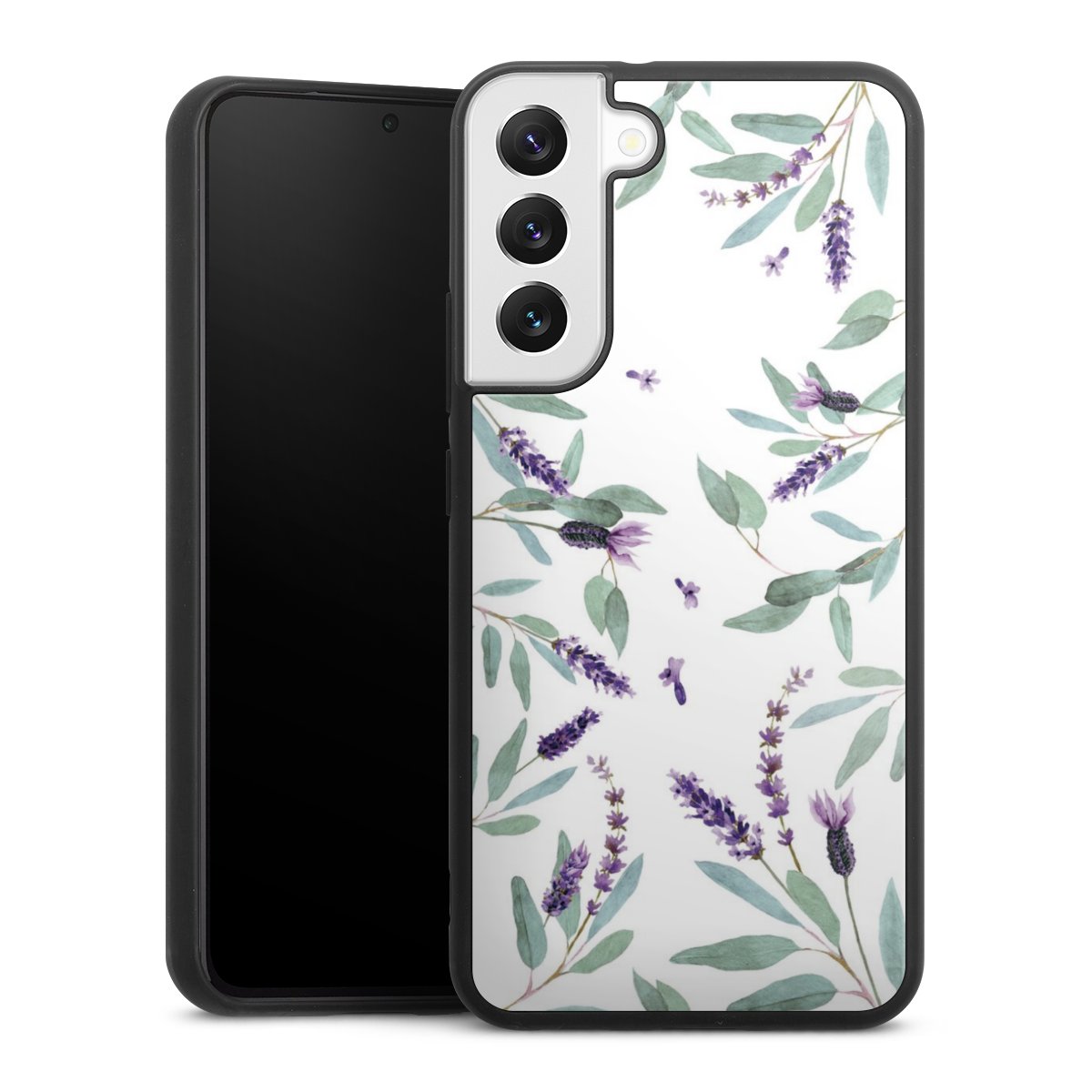 We print your design on the back of the glass inlay and then connect it firmly to the silicone case ,so that nothing sticks out and everything looks like it was cast from one piece. In addition, the sturdy glass element is protected from scratches by an additional coating and ensures a slight reflection on the shiny print image.