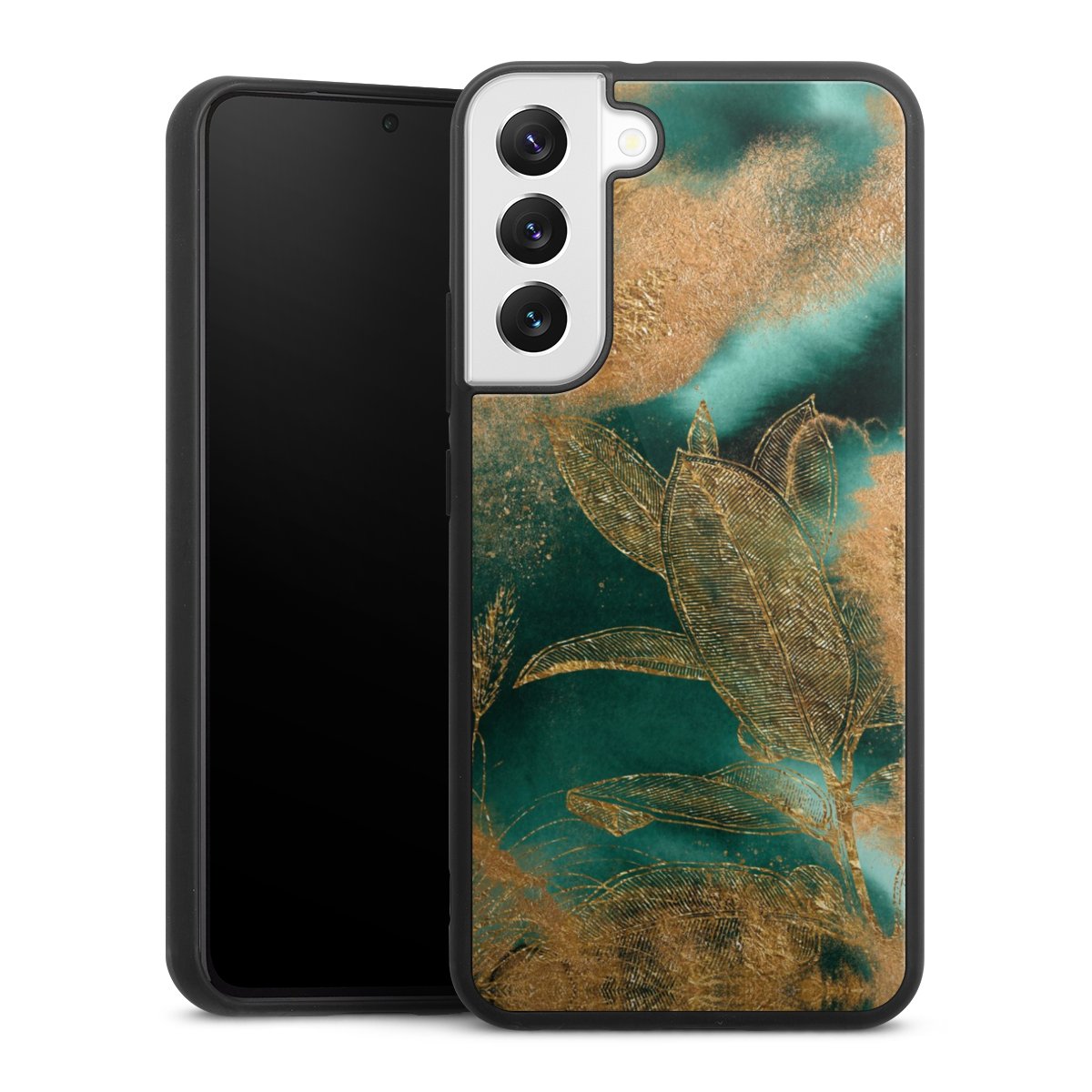 We print your design on the back of the glass inlay and then connect it firmly to the silicone case ,so that nothing sticks out and everything looks like it was cast from one piece. In addition, the sturdy glass element is protected from scratches by an additional coating and ensures a slight reflection on the shiny print image.
