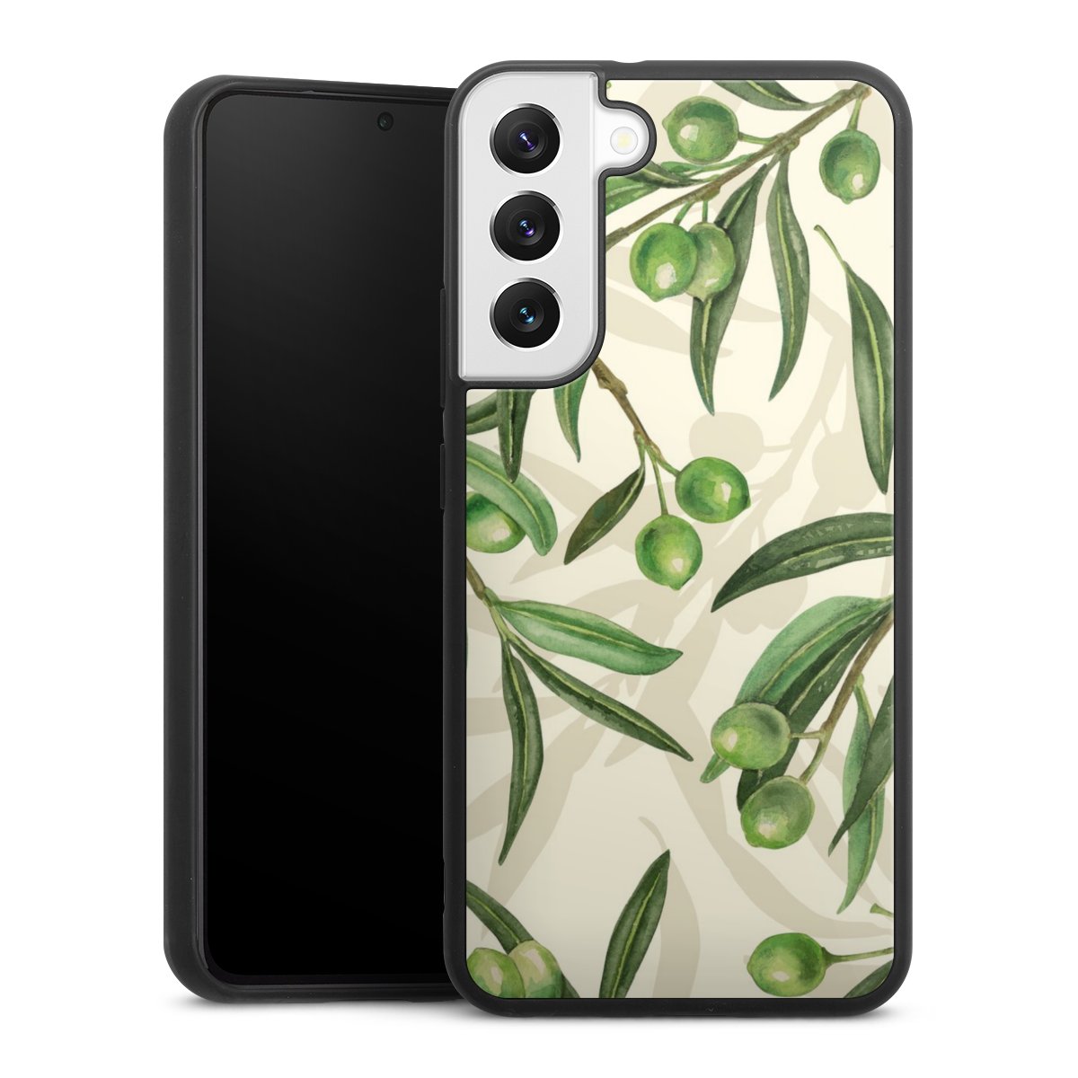 We print your design on the back of the glass inlay and then connect it firmly to the silicone case ,so that nothing sticks out and everything looks like it was cast from one piece. In addition, the sturdy glass element is protected from scratches by an additional coating and ensures a slight reflection on the shiny print image.