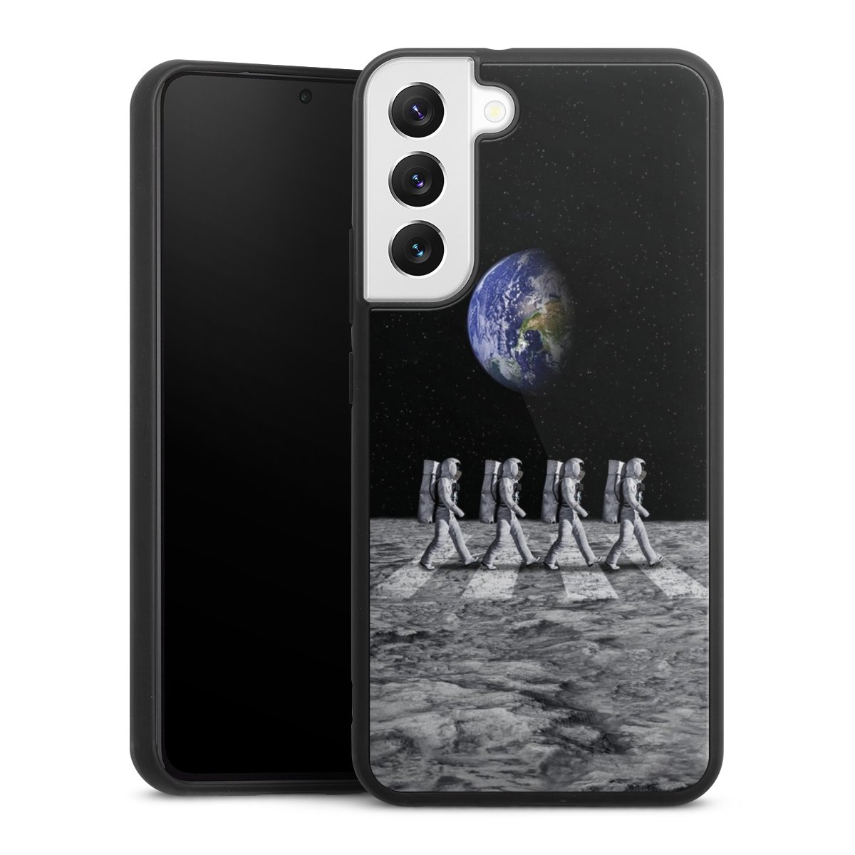 We print your design on the back of the glass inlay and then connect it firmly to the silicone case ,so that nothing sticks out and everything looks like it was cast from one piece. In addition, the sturdy glass element is protected from scratches by an additional coating and ensures a slight reflection on the shiny print image.