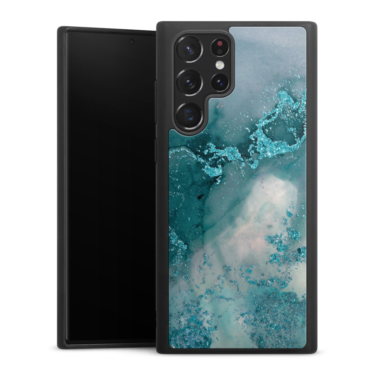 We print your design on the back of the glass inlay and then connect it firmly to the silicone case ,so that nothing sticks out and everything looks like it was cast from one piece. In addition, the sturdy glass element is protected from scratches by an additional coating and ensures a slight reflection on the shiny print image.
