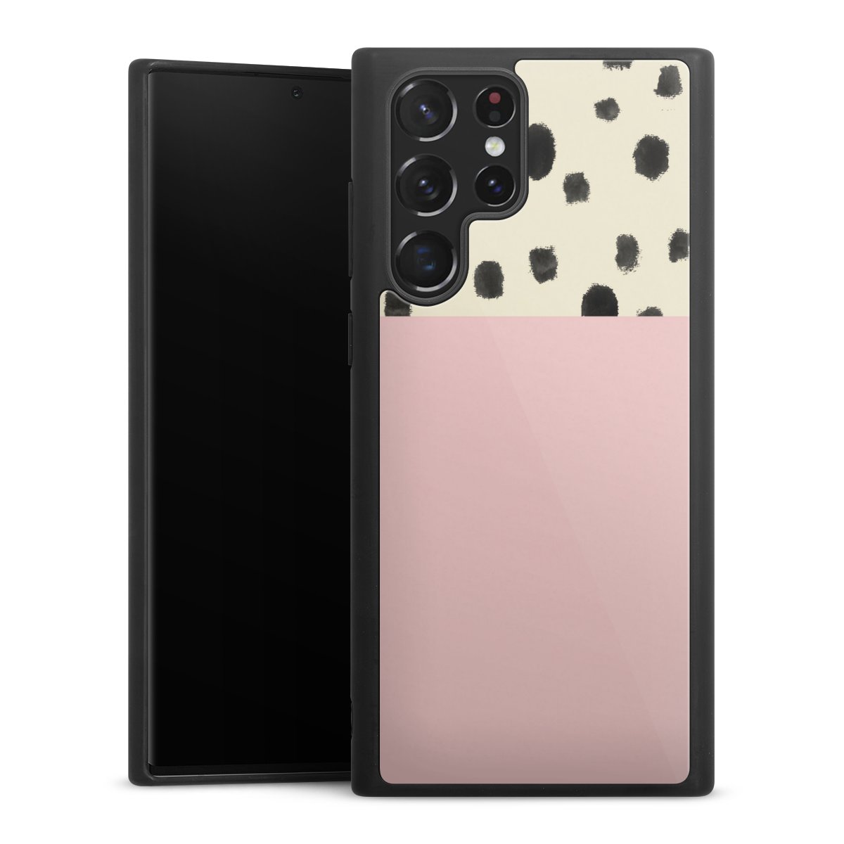 We print your design on the back of the glass inlay and then connect it firmly to the silicone case ,so that nothing sticks out and everything looks like it was cast from one piece. In addition, the sturdy glass element is protected from scratches by an additional coating and ensures a slight reflection on the shiny print image.