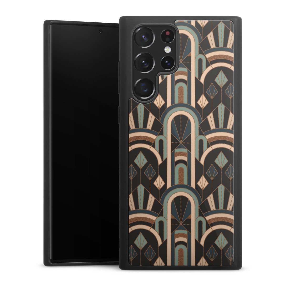 We print your design on the back of the glass inlay and then connect it firmly to the silicone case ,so that nothing sticks out and everything looks like it was cast from one piece. In addition, the sturdy glass element is protected from scratches by an additional coating and ensures a slight reflection on the shiny print image.