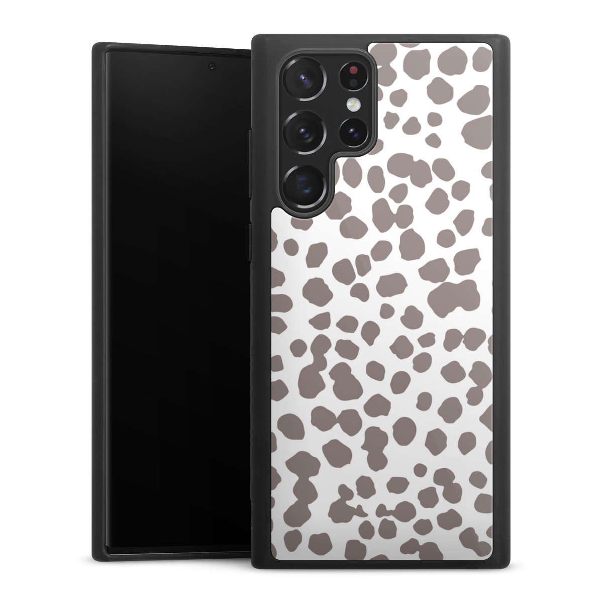 We print your design on the back of the glass inlay and then connect it firmly to the silicone case ,so that nothing sticks out and everything looks like it was cast from one piece. In addition, the sturdy glass element is protected from scratches by an additional coating and ensures a slight reflection on the shiny print image.
