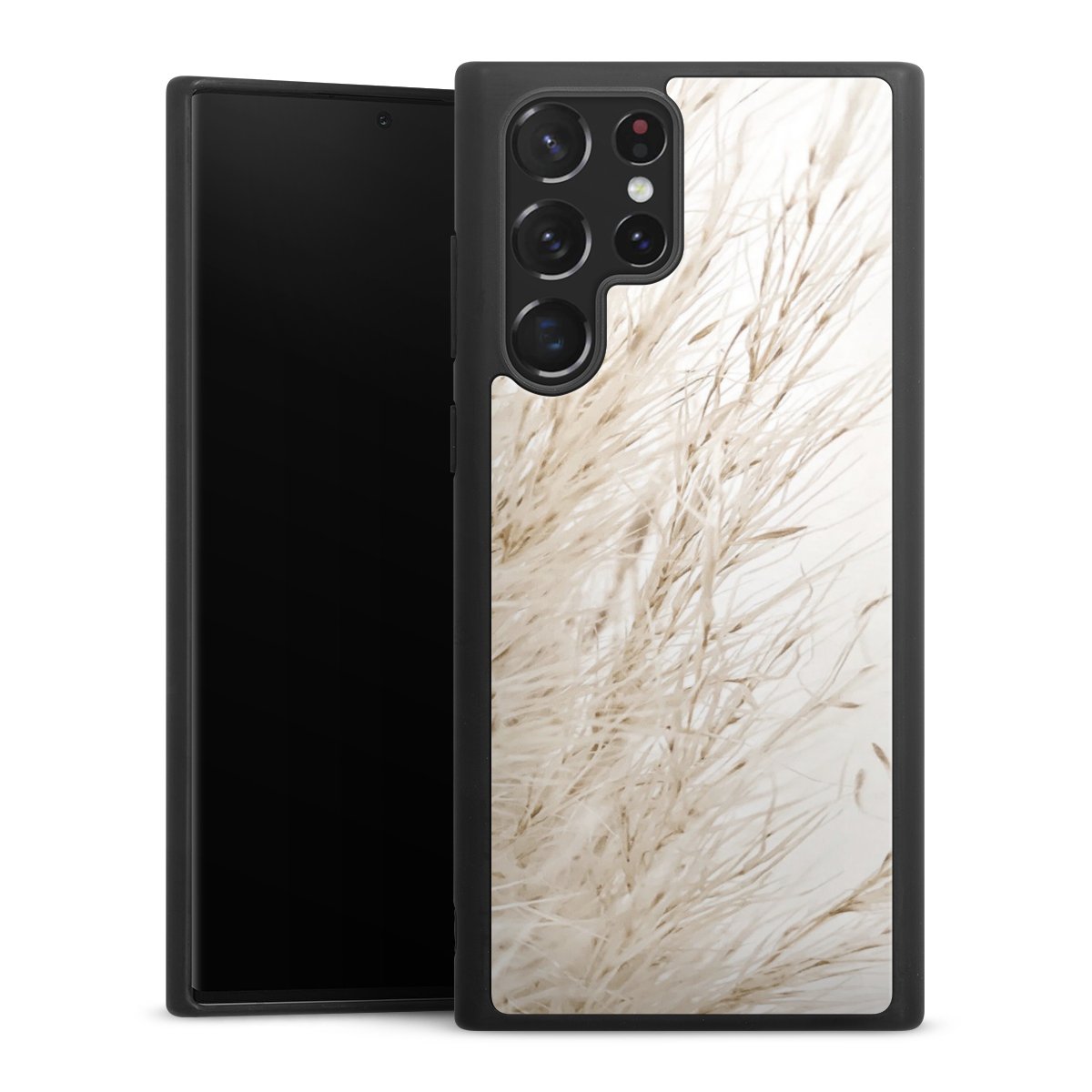 We print your design on the back of the glass inlay and then connect it firmly to the silicone case ,so that nothing sticks out and everything looks like it was cast from one piece. In addition, the sturdy glass element is protected from scratches by an additional coating and ensures a slight reflection on the shiny print image.