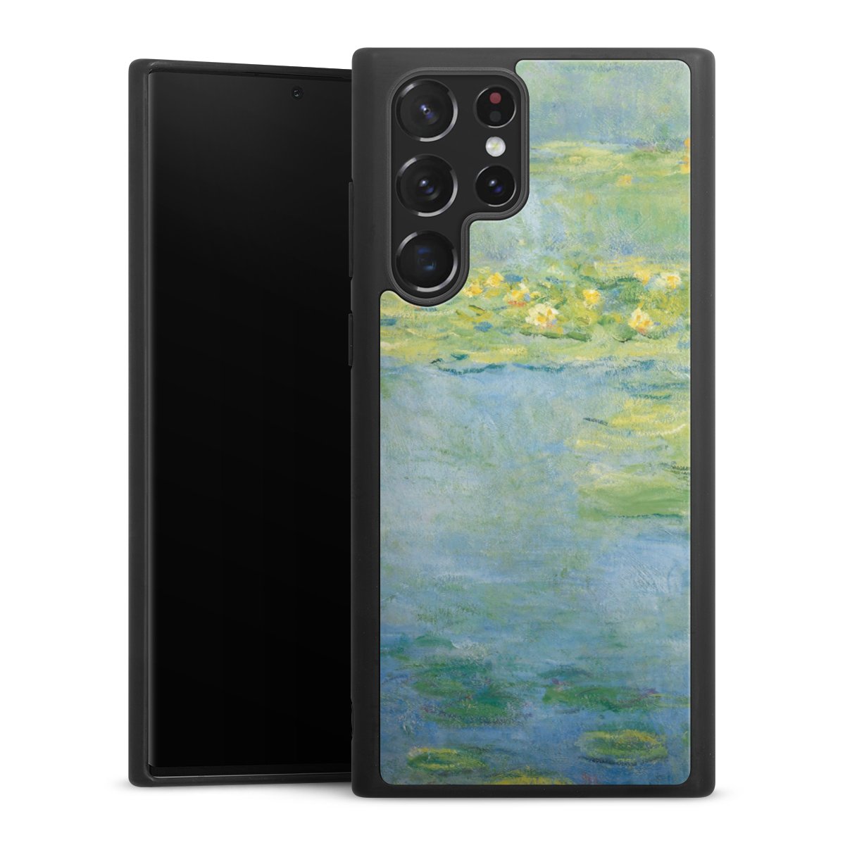 We print your design on the back of the glass inlay and then connect it firmly to the silicone case ,so that nothing sticks out and everything looks like it was cast from one piece. In addition, the sturdy glass element is protected from scratches by an additional coating and ensures a slight reflection on the shiny print image.